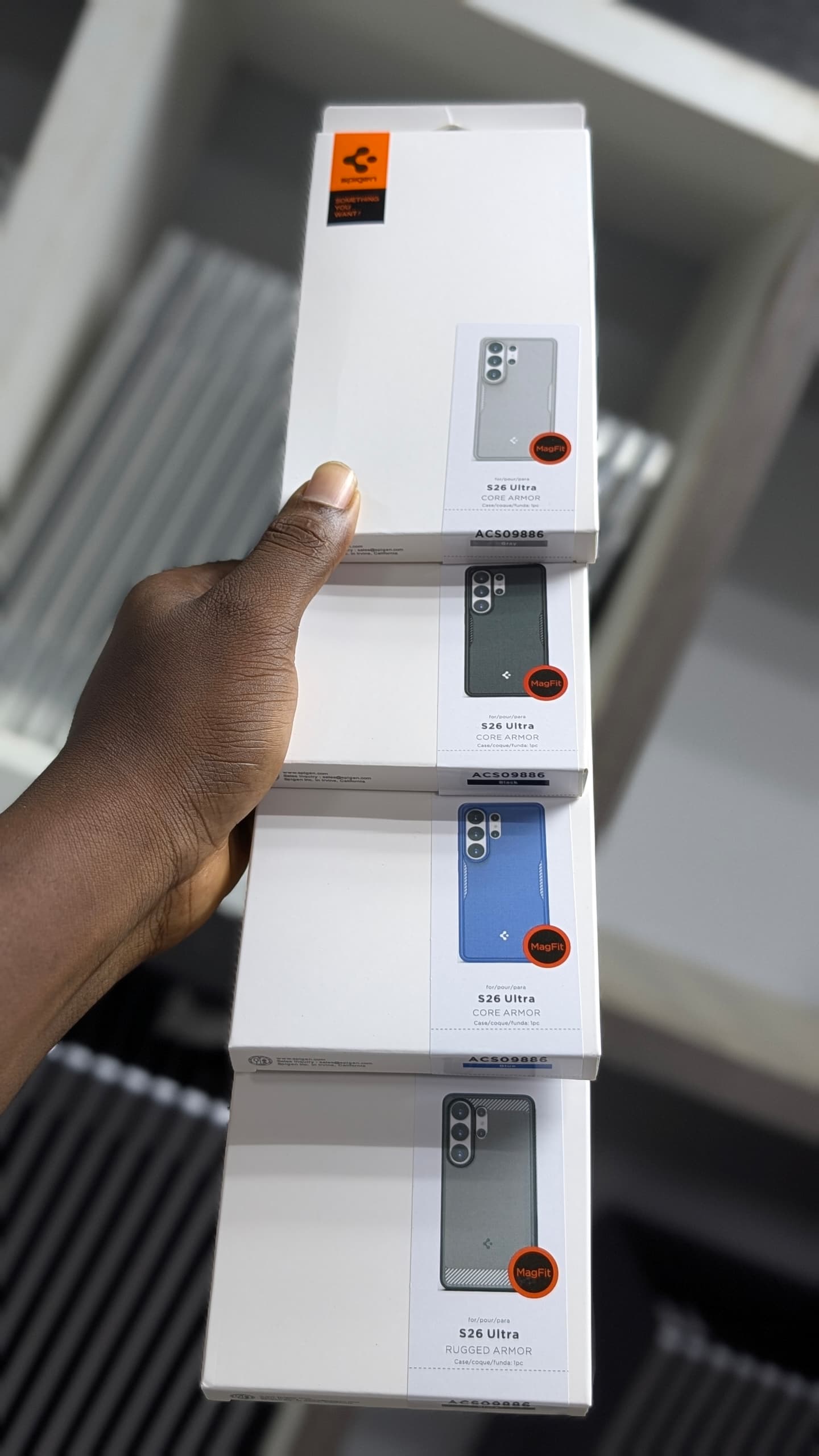 Protect your valuable Galaxy S26 Ultra with an original Spigen Core Armor case, designed for sleek protection without adding bulk. This premium case, available in Black, Grey, and Dark Blue, offers robust defense against drops and scratches while maintaining a slim profile. Engineered with Spigen's renowned quality, it provides reliable protection for your device. This is an original Spigen product, ensuring authentic quality and a perfect fit for your Galaxy S26 Ultra.